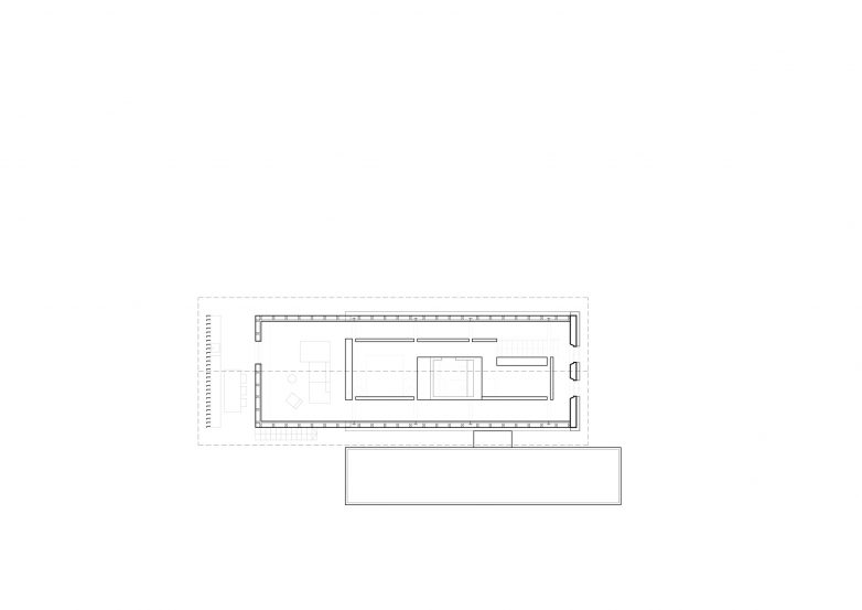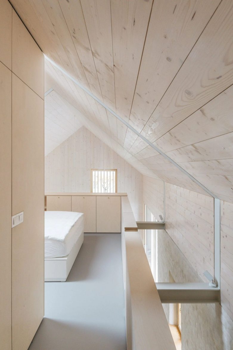 Novi volumen, koji je umetnut u samom centru objekta, sadrži spavaću sobu na međuspratu, dok su kuhinjska niša i trpezarija smešteni ispod.