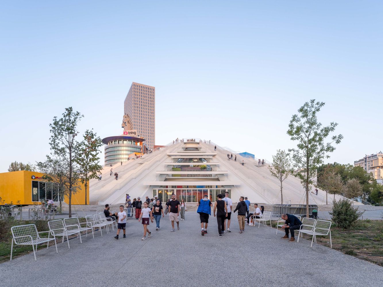 Svakako jedna od najintrigantnijih intervencija MVRDV je upravo dodavanje stepenica kosim fasadama objekta, čime je omogućeno da narod Albanije bukvalno šeta po „eksponatu“ bivšeg diktatora.