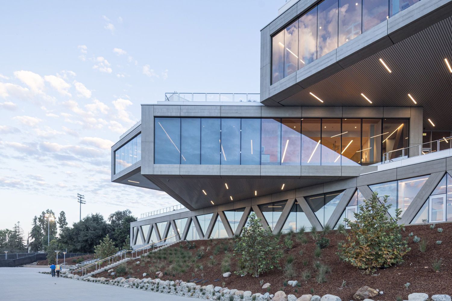 Kako dan prelazi u noć, Centar za nauke Roberta Deja ostaje svetionik susreta naučnih ideja, istraživanja i inovacija. Osvetljena zgrada, sa planinama San Gabriel u pozadini, ne samo da obeležava istočni ulaz u kampus, već transformiše okolinu u inspirativno mesto otkrića.