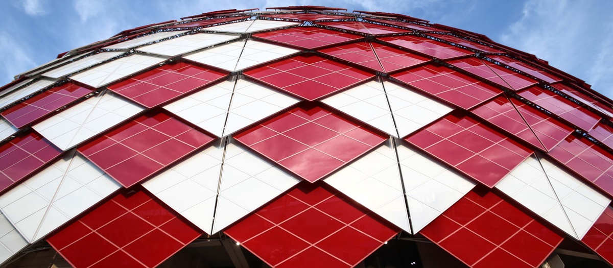 Danas fasadu stadiona Spartak krase belo-crveni paneli u čast matičnog kluba koji menjaju boju kada ovde igra nacionalni tim. Upadljivi ornament podseća na ratnu opremu koju je nekada davno nosio čuveni gladijator Spartak po kojem je tim i dobio ime. Statua gladijatora nalazi se na samom ulazu.