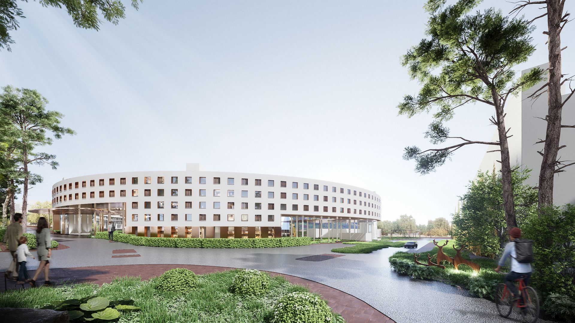 Preko šupljih stubova, kišnica odlazi do kolektora u garažama gde se voda prečišćava i ponovo koristni za zalivanje, toplotne pumpe i kao sanitarna. U prizemlju stambene zgrade postoji kafeterija, restoran, teretana, biblioteka, kao i vrtić.