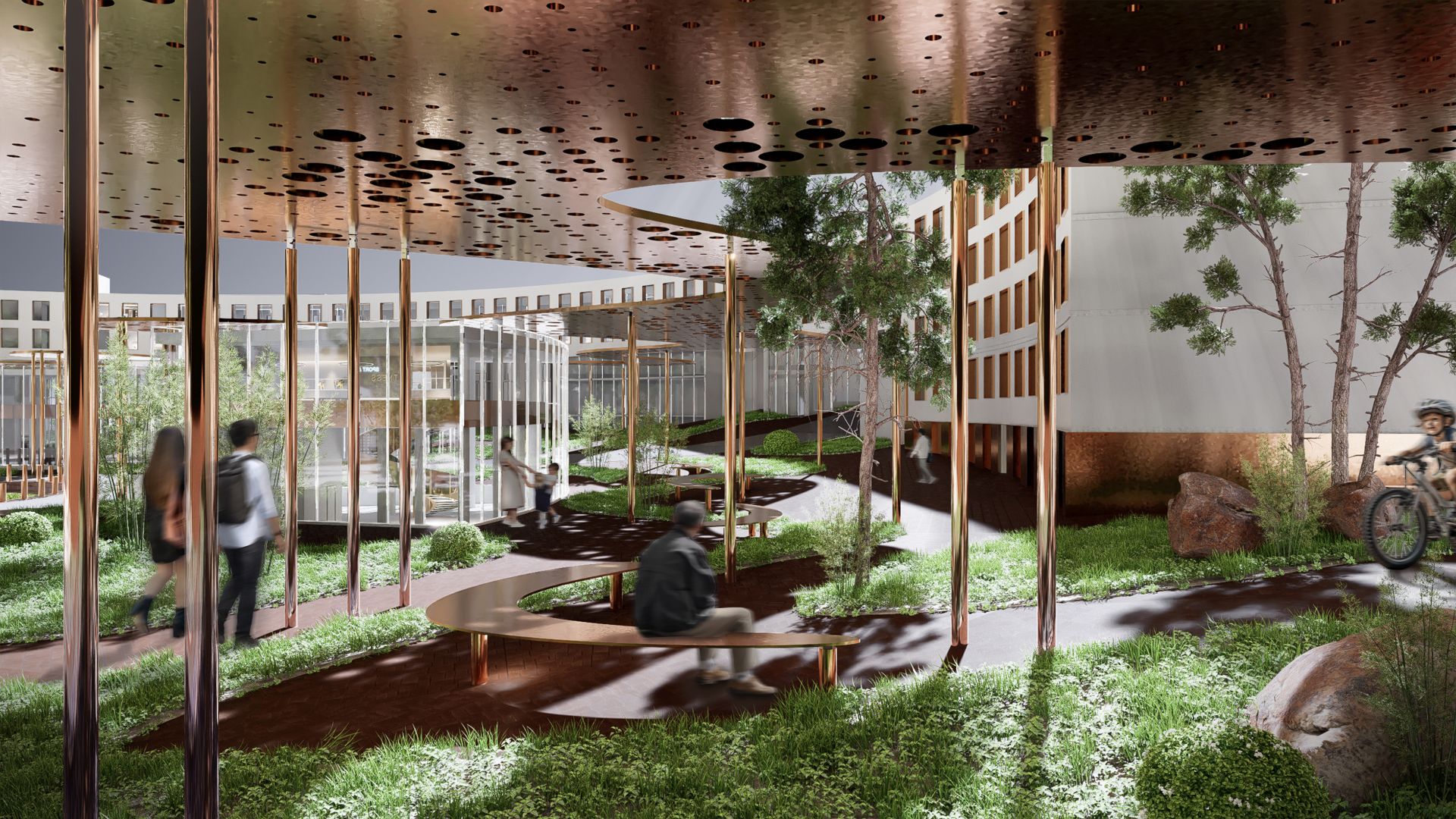Finalnu formu karakteriše interaktivni polujavni prostor, između privatnih i javnih sadržaja, koji se uvlači između građenih struktura kao brzak i sve celokupno vezuje.