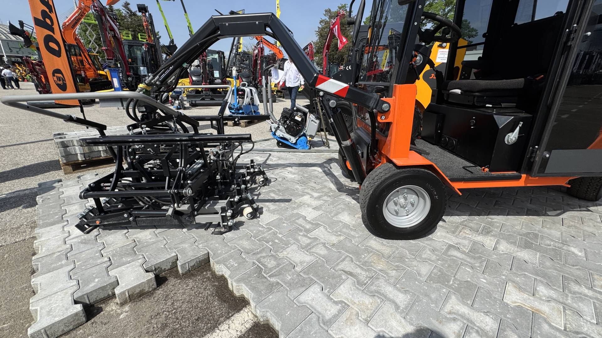 Na istom štandu videli smo i zanimljivu mašinu za postavku ivičnjaka. Ručno vođena, ova mašina hvata pod vakumom ivičnjake i slaže ih sa kapacitetom od 500 metara dnevno. Koliko je ovo brzo, svedoči podatak da je maksimalan kapacitet ručnim postavljanjem do 150 metara dnevno. Cena iznosi 57.000 + PDV.