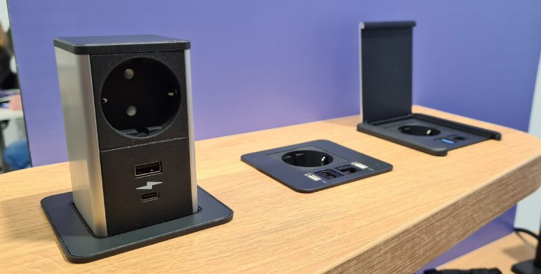 Ugradne modularne utičnice za radne stolove, kuhinjske pultove i konferencijske stolove dizajnirani su i napravljene u Srbiji, u Čačku.