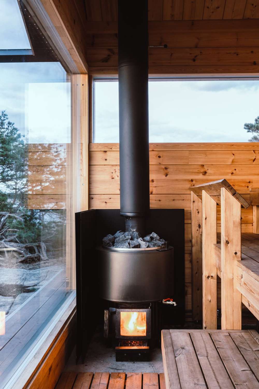 Tradicionalna finska peć na drva Kota Luosto, koja je postavljena u sauni greje tekuću vodu i podove u celom objektu.