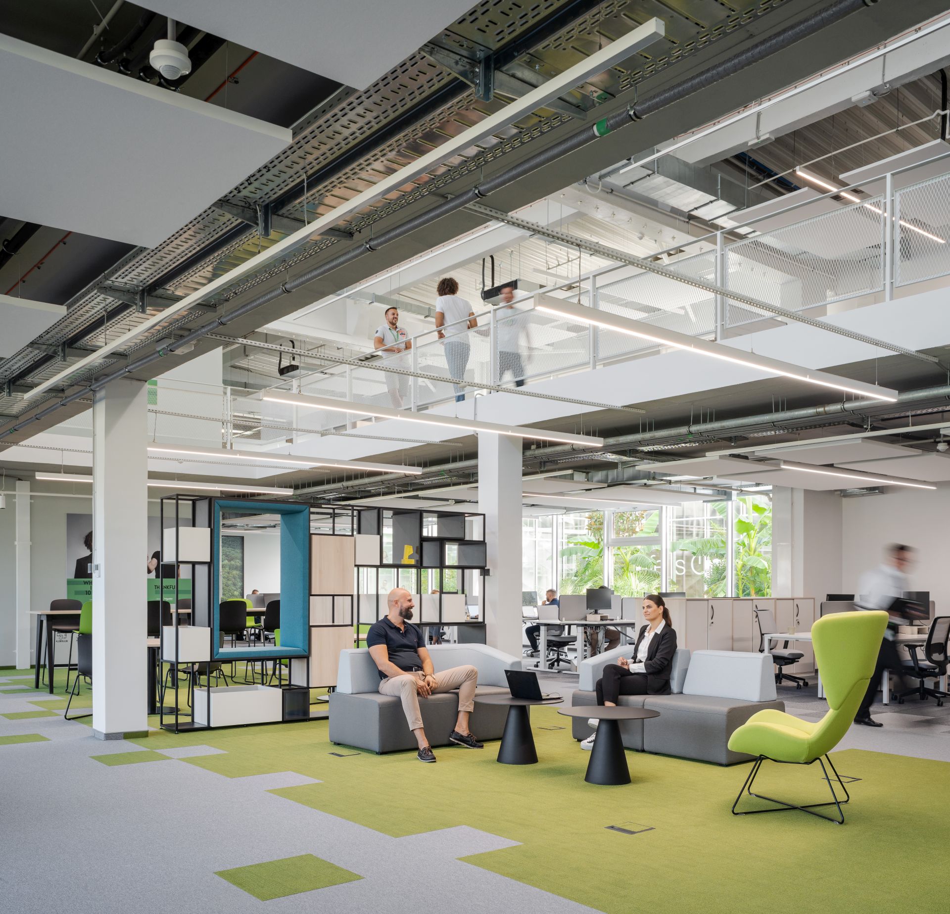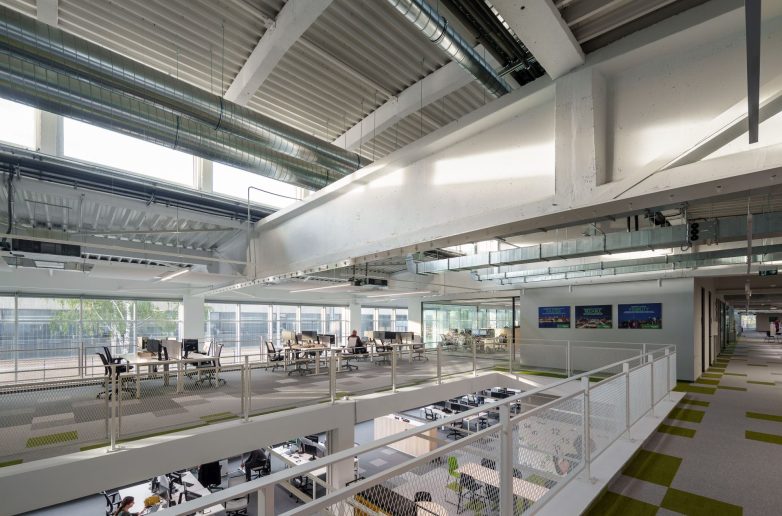 Ovde upravo možemo govoriti o unutrašnjoj arhitekturi, jer je prostor daleko više od običnog enterijera, pa se njegovom oblikovanju tako i pristupilo. Da bi se više od 700 zaposlenih osećalo što prijatnije tokom obavljanja svojih radnih zadataka, njihov ambijent je osmišljen tako da prirodno osvetljenje što više prodire u unutrašnjost i da se stavi akcenat na integraciju spoljnog i unutrašnjeg prostora.