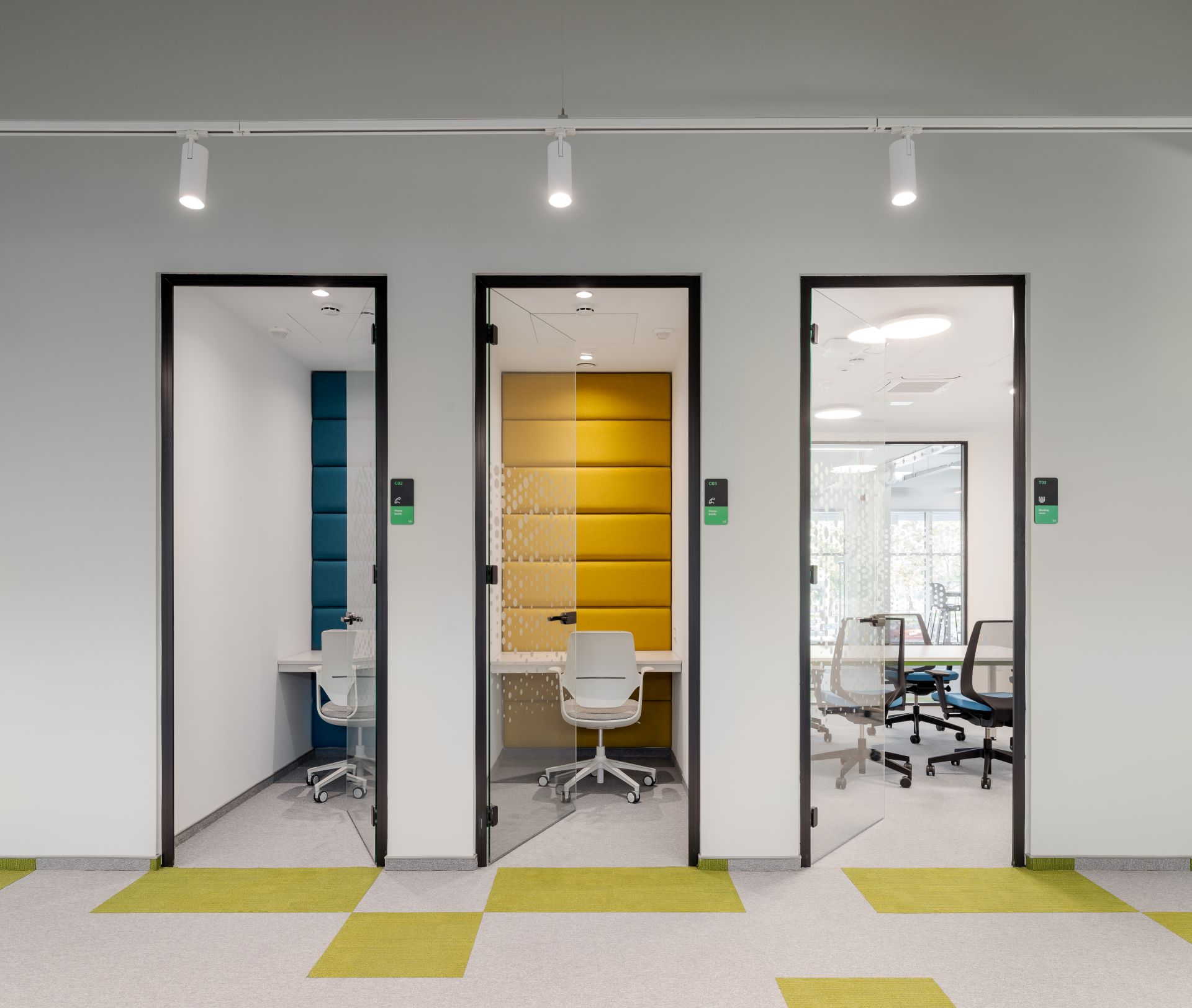 Kako se dalje ulazi u hub, primećuje se da su mnoge prostorne strukture (etaže, komunikacije itd.) stare fabrike sačuvane, ali prenamenovane, pa su radni prostori potpuno otvoreni. Boje i materijali su posebni birani, kako bi boravak u prostoru bio što prijatniji, a održavanje što lakše i efikasnije.