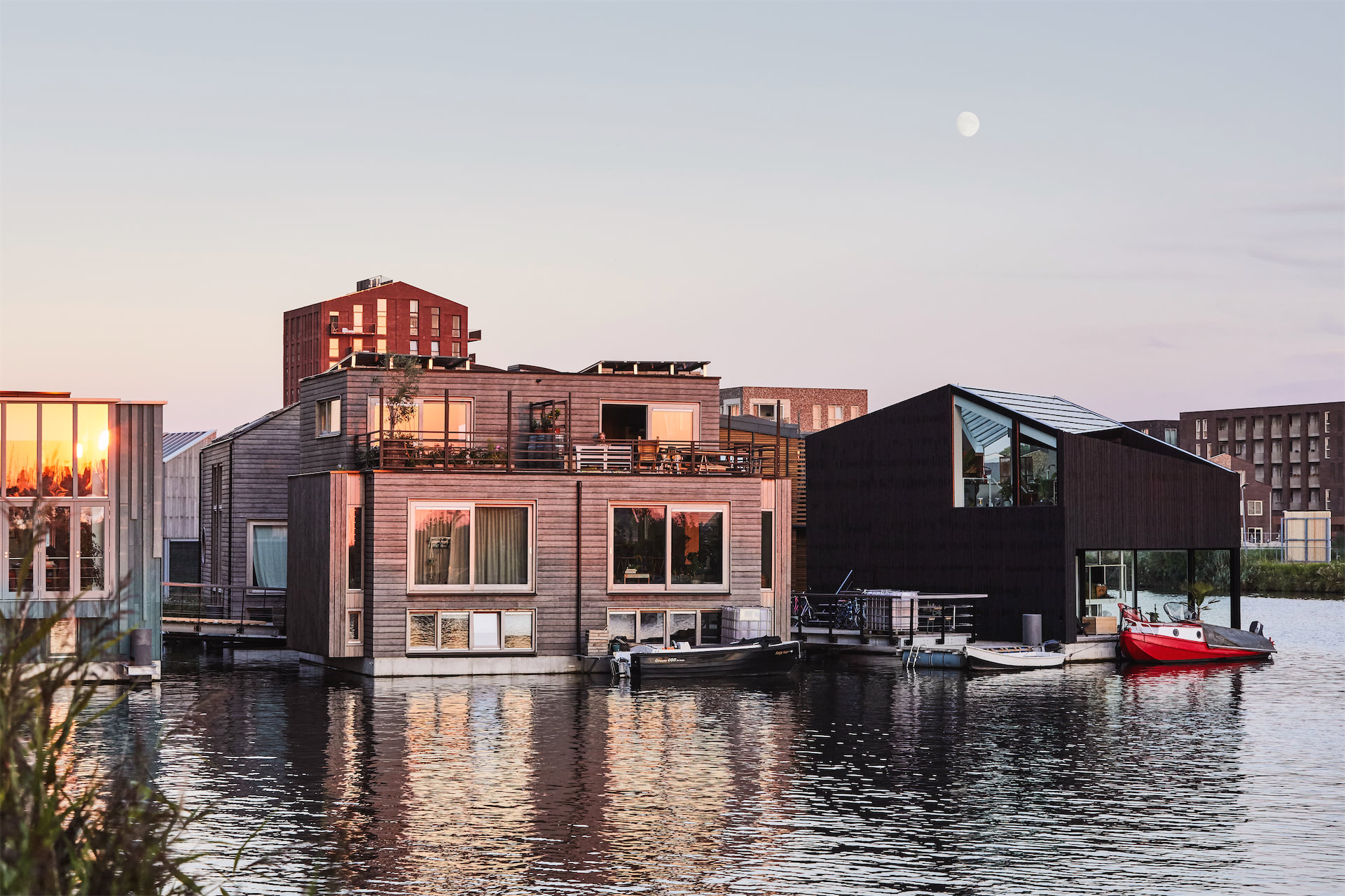 Nakon deset godina planiranja, kanal u Severnom Amsterdamu (stara industrijska zona) postao je mesto gde složno živi 46 domaćinstva. Iako je više vlasnika angažovalo istog arhitektu i izvođača, rezultat saradnje je jedno dinamično susedstvo. Stari „kraj“ sada ima nove stanare.