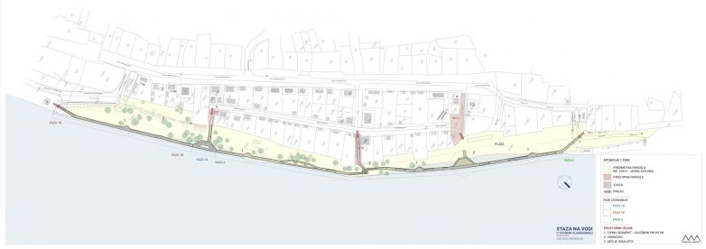 Prema rešenju, isplanirana je javna površina oblikovana kao platforma iznad vodene površine, sa prilazima koji čine vezu sa obalom.