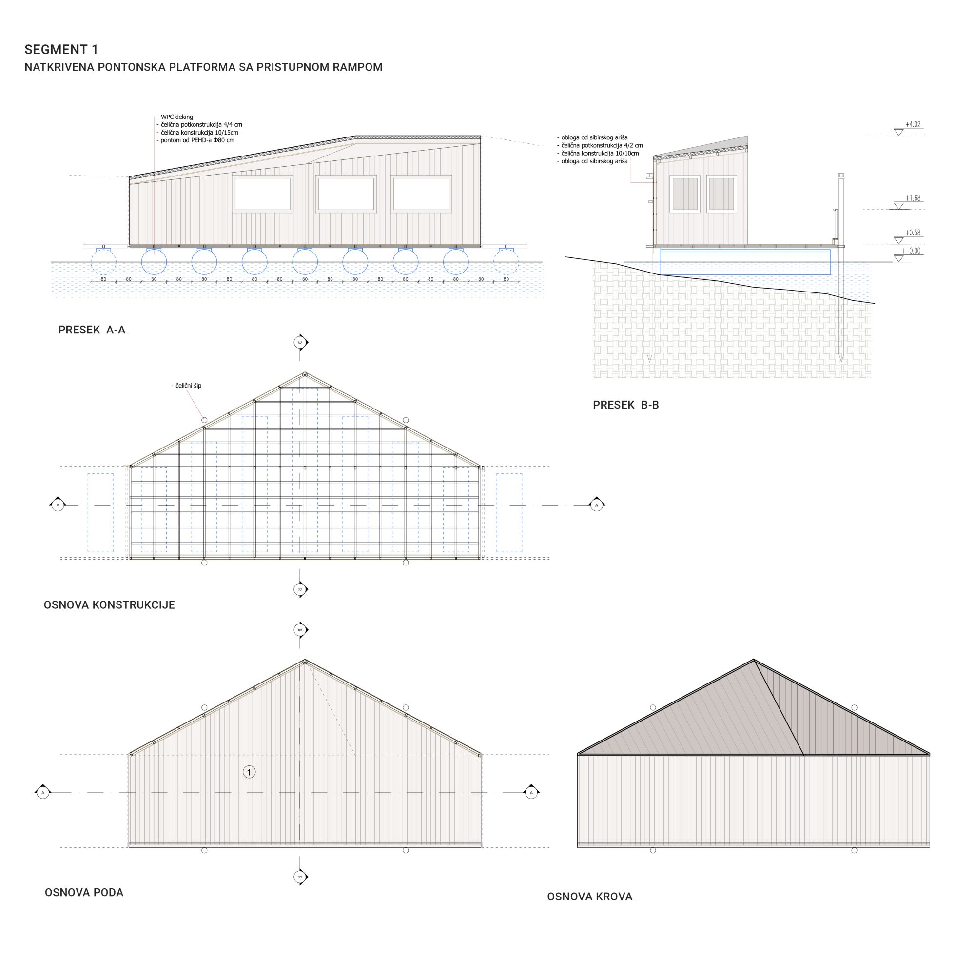 U 1a fazi projekta planirana je izgradnja tri segmenta, koji su dimenzionisani tako da omoguće smeštaj prodajnih štandova, pa je na njima moguće organizovati različite događaje, poput manjih festivala i sl. Dodatna dva segmenta širine 200 cm predviđena su za kretanje, te kao pristan za čamce.