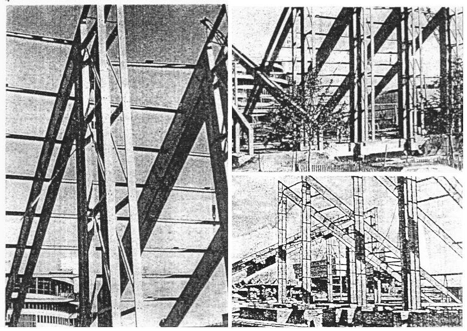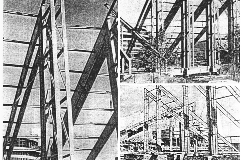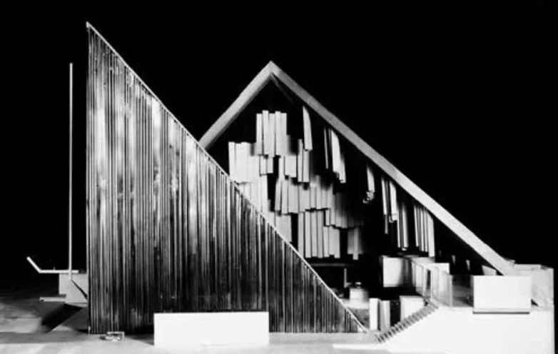 Pored toga, kada se pogledaju ove istorijske slike unutrašnjosti paviljona, mogu se videti neobične metalne skulpturalne instalacije koje vise sa centra plafona, veoma slične metalnim plafonskim skulpturama koje je ovaj arhitekta predvideo u dizajnu svog koncepta paviljona.