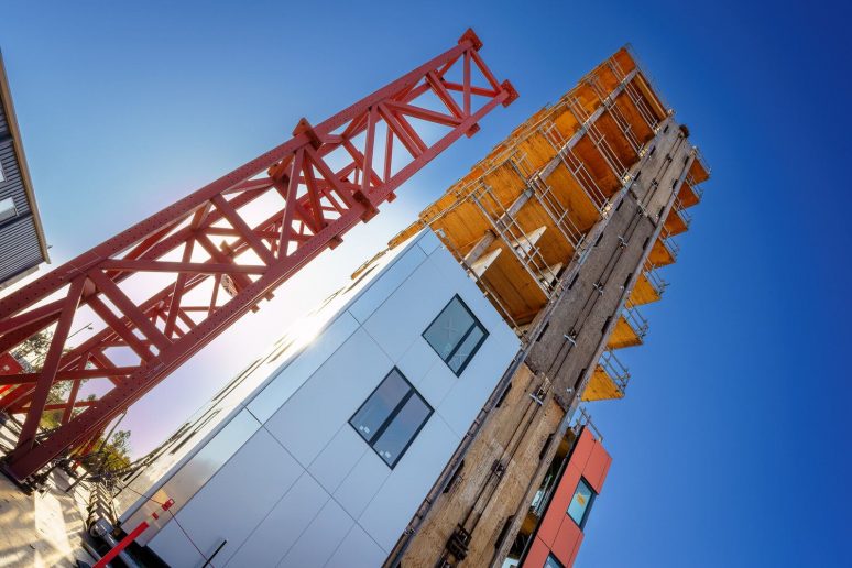 Tallwood Building koju su projektovali LEVER Architecture, a izvela firma Timberlab, koristila je donirane proizvode od masivnog drveta kako bi se napravila konstrukcija visine 35 metara.
