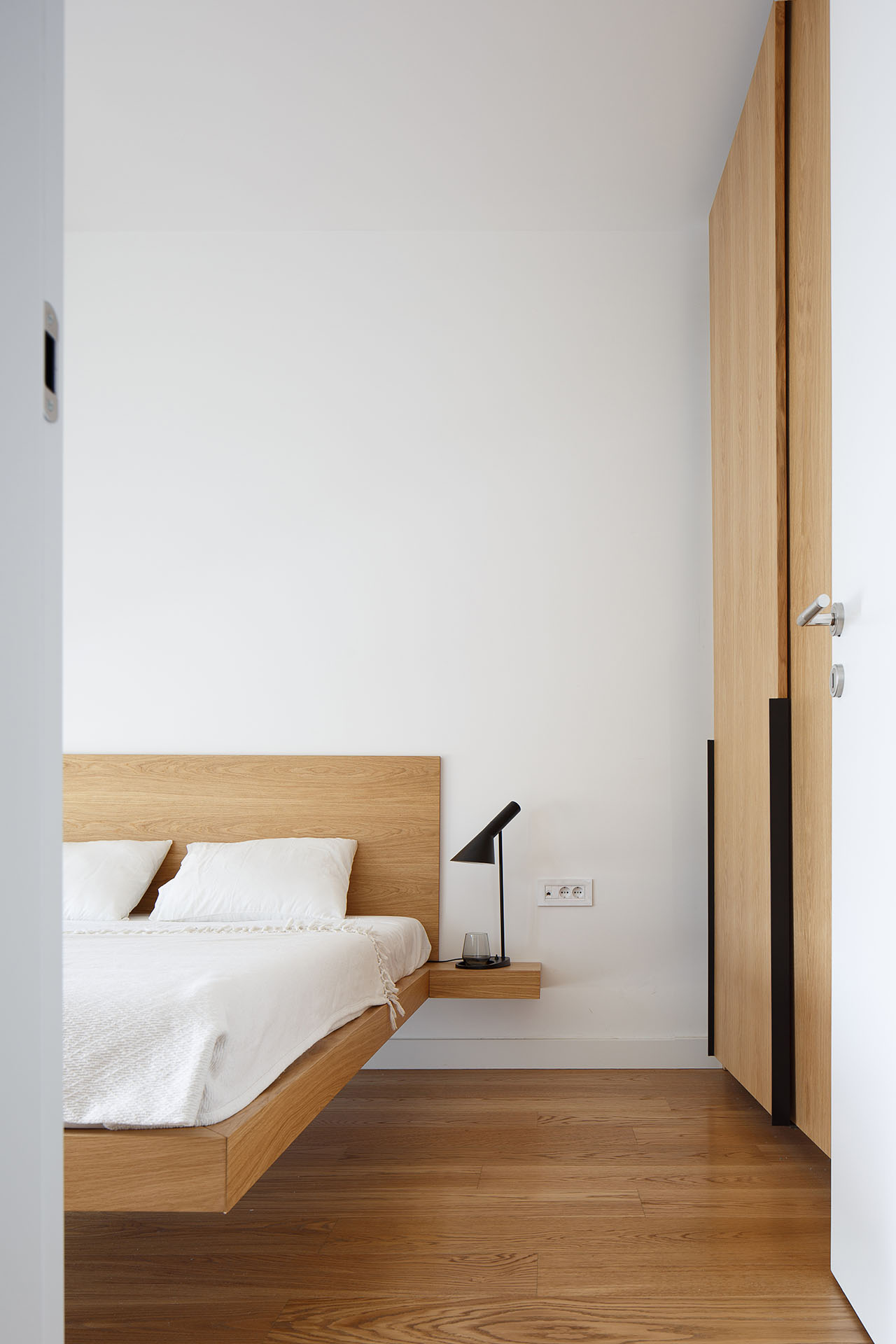 Umirujući ton drveta dodatno je naglašen u spavaćoj sobi, u podnim oblogama i nameštaju, u kojima je posebno dizajniran relaksirajući prirodni prostor. Kontinuiranom primenom istog materijala u spavaćoj sobi definisan je prostor bez jakih vizuelnih senzacija, koji maksimalizuje komfor prostorne celine.