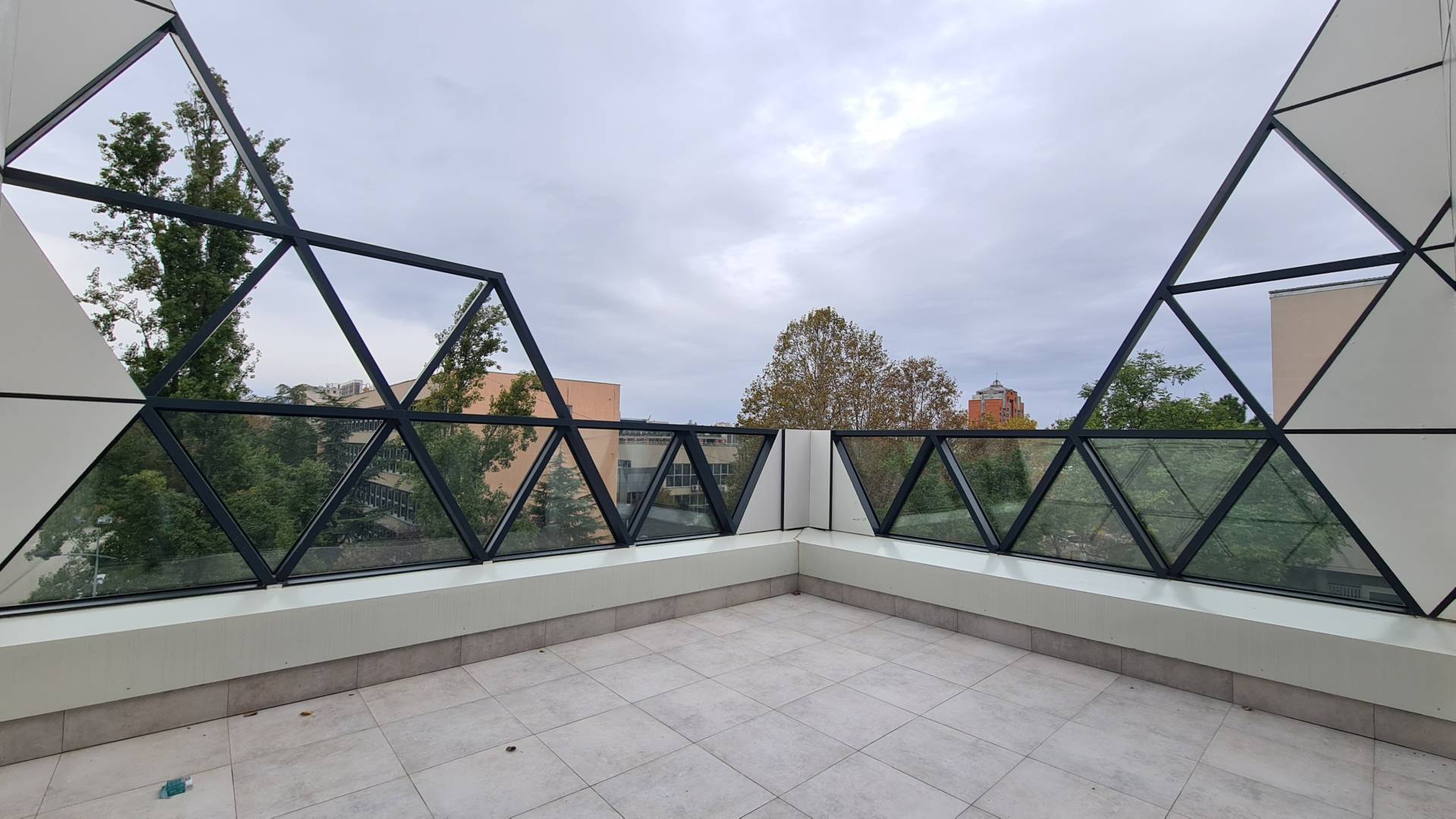šteta što arhitekta nije uspeo nekako da ove mašinske prostorije na krovu integriše unutar arhitekture objekta več ovako štrče