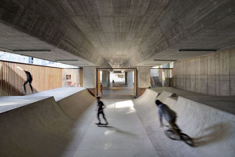 Projekat je osmišljen kao mini-rampa za skejtbord, koja zauzima neiskorišćeni džep prostora ispod južnog kraja mosta. Rampa je dizajnirana u saradnji sa skejterima i konsultantom za skejt parkove, s obzirom na to da su krivine i dimenzije rampe izuzetno specifične, objasnile su arhitekte.