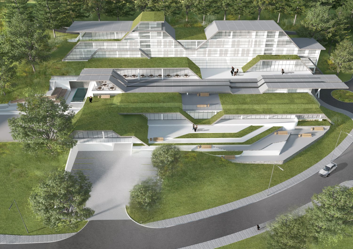 Projektovan u duhu savremene arhitekture zelene gradnje i uklopljen je u ambijentalnu celinu i okruženje.