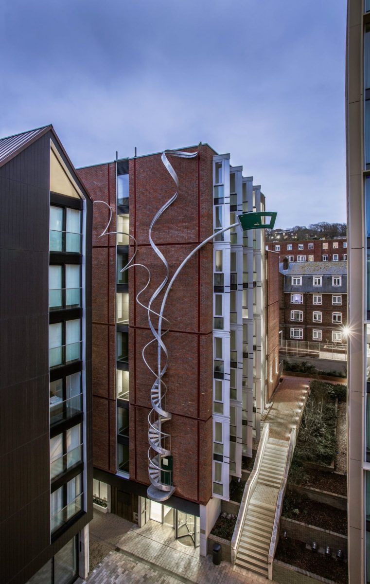 Delom komad infrastrukture, a delom dramatična skulptura, vanjsko stepenište čiji je autor Aleks Činek postepeno se razdvaja u zasebne elemente kako raste u visinu uz zgradu od opeke u engleskom gradu Brajtonu.