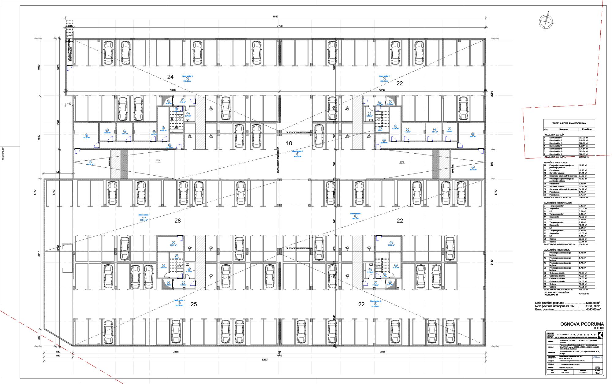 Budući da ukupan potrebni broj parking mesta iznosi 297, ostalih 134 parking mesta je planirano u dvorištu, na terenu (od kojih su 3 parking mesta predviđena su za osobe sa invaliditetom).