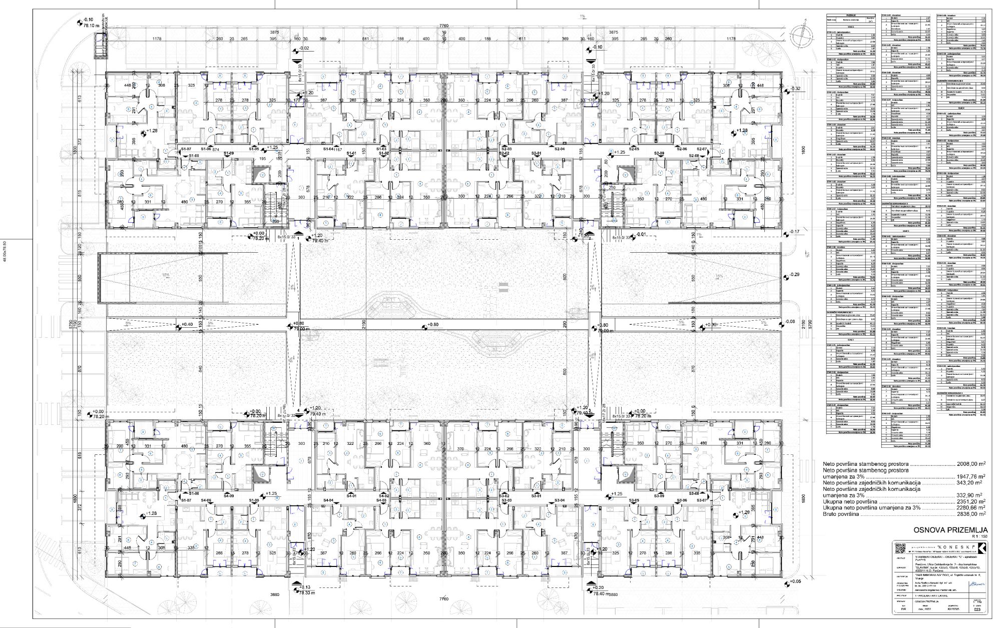 Bruto površina nadzemnih etaža svih objekata iznosi 23.036 m², dok ukupna bruto površina svih objekata na parceli iznosi 28.676 m².