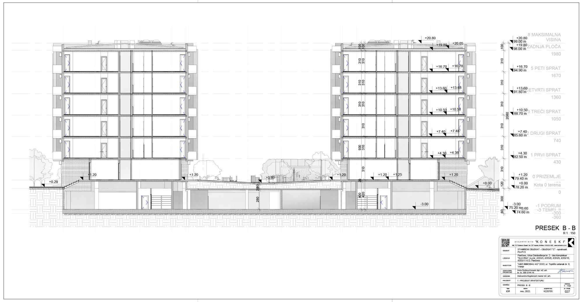 Istočno od objekta „B“, planirana je izgradnja slobodnostojećeg stambenog objekta “C”, spratnosti Po+P+5, koji se sastoji od 4 nadzemne lamele/ulaza i jednom velikom garažom u podrumskoj etaži, zajedničkoj za sve lamele.
