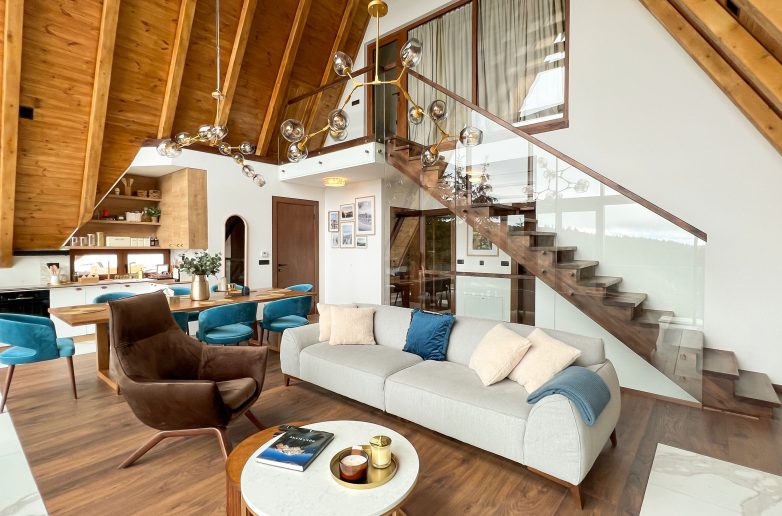 Specifičnost ove A-frame kuće oličena je u naletu emocija koje svi korisnici osete kada se vizure samog enterijera i eksterijera pomešaju u jednu celinu.