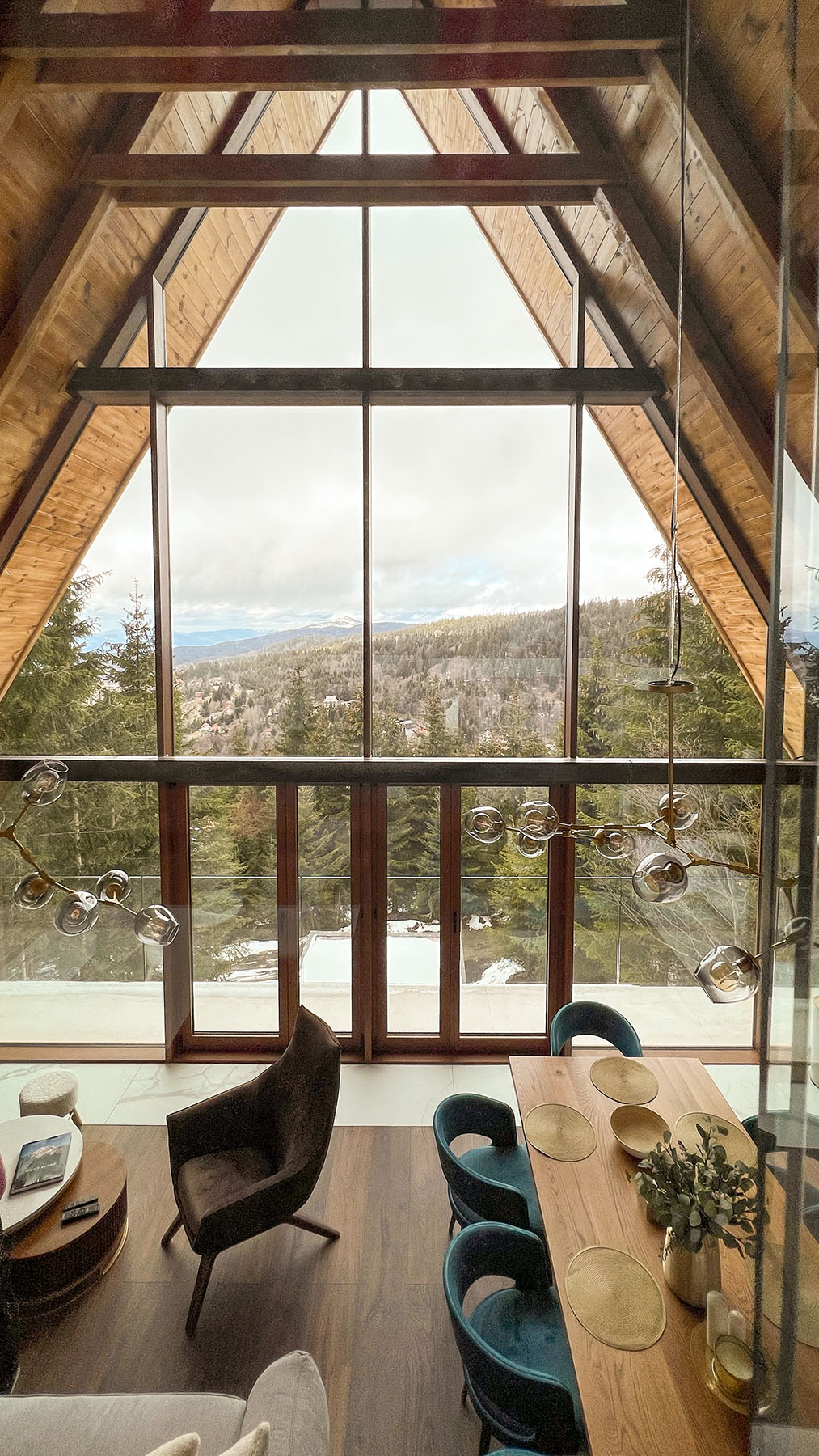 Krov od poda do plafona koji reflektuje planinske vrhove Kopaonika