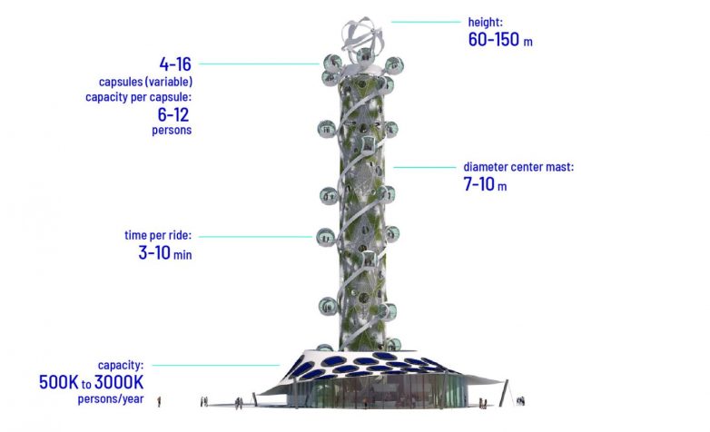 Čitav tim inženjera iz holandskih kompanija KCI, Bosch Rexroth, Hillebrand i NorthernLight radili su na konceptualnom rešenju projekta zvanog Spiral Tower. Njihova ideja zasniva se na kombinovanju različitih izvora obnovljive energije kako bi se omogućilo samostalno funkcionisanje tornja koji bi u kabinama vozio posetioce do samog vrha gde bi uživali u panoramskom pogledu.