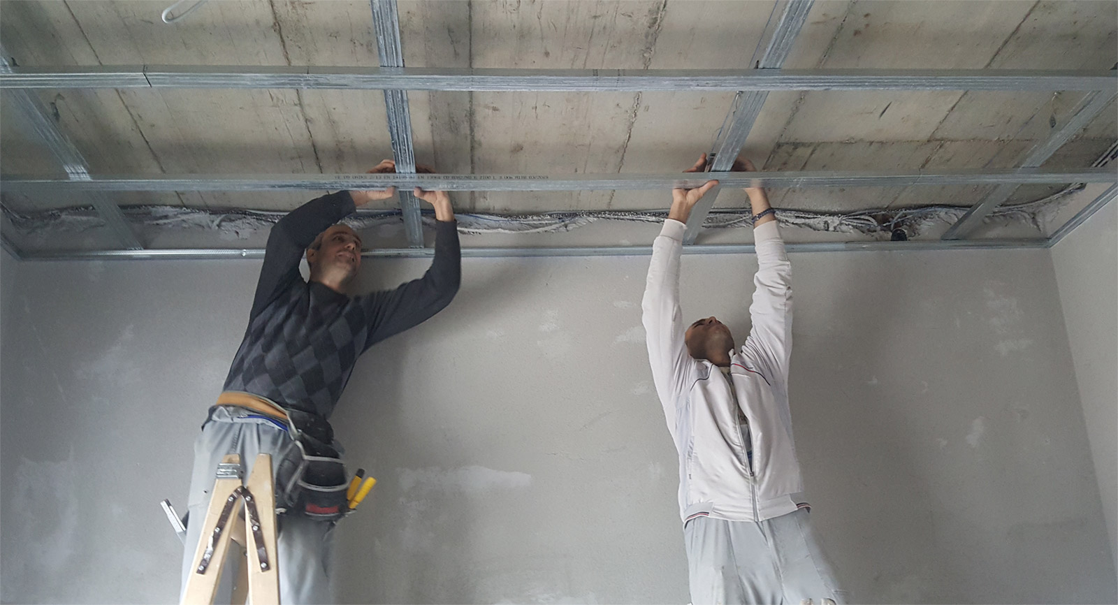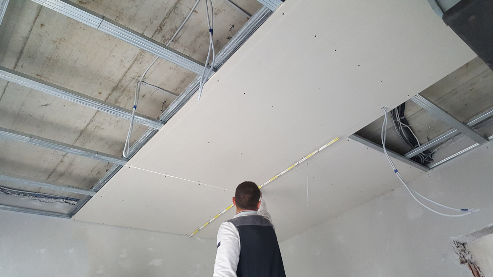 Iznad ove linije, koja se ocrtava na plafonu, ostaju sve instalacije koje će biti skrivene.