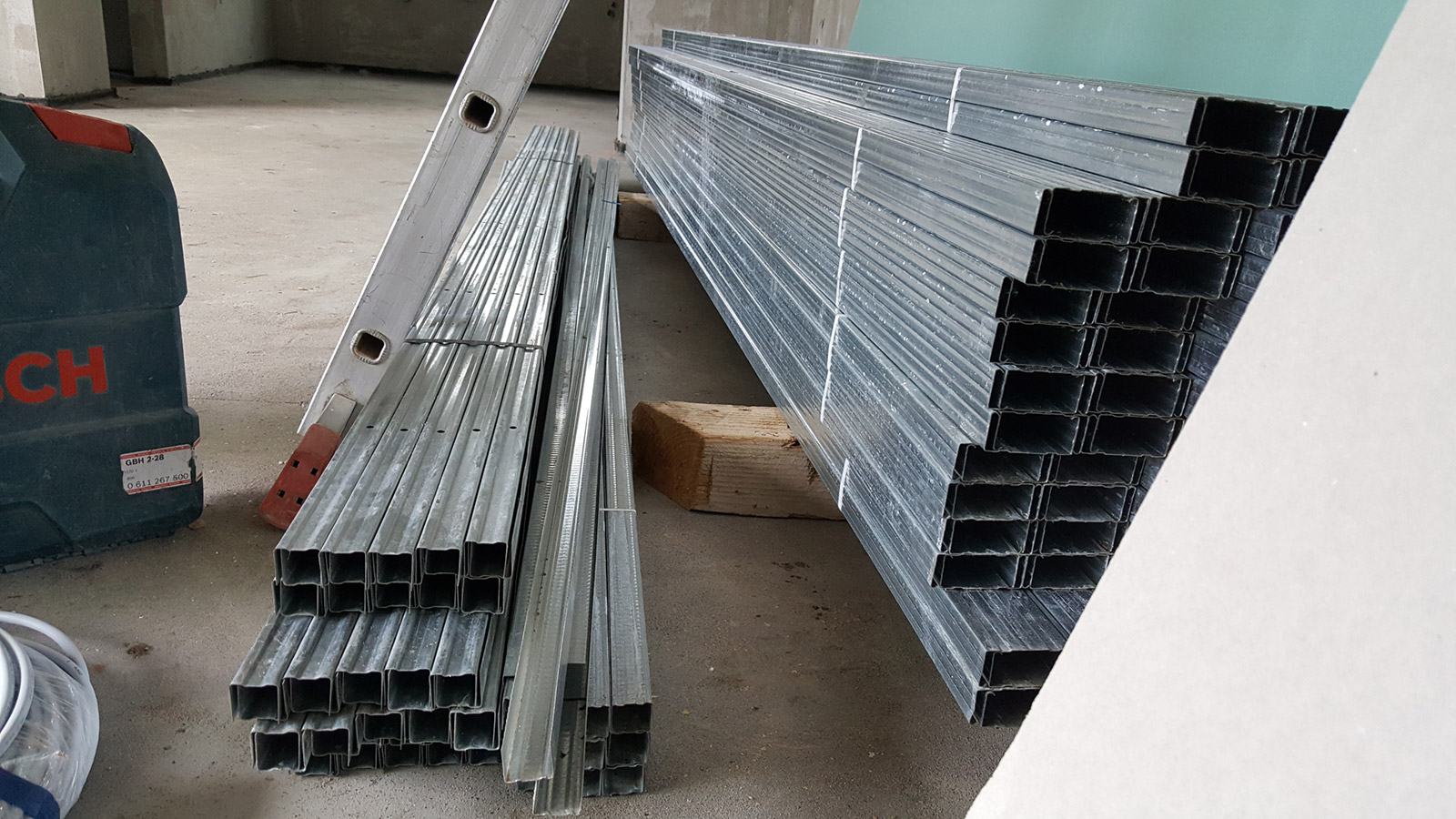 Primarna noseća konstrukcija (noseći profili) postavlja se u razmaku između 90 i 120 cm dok će se kasnije sekundarna konstrukcija, na koje se prišrafljuju ploče (montažni profili), postavljati na razmaku od 50 cm.