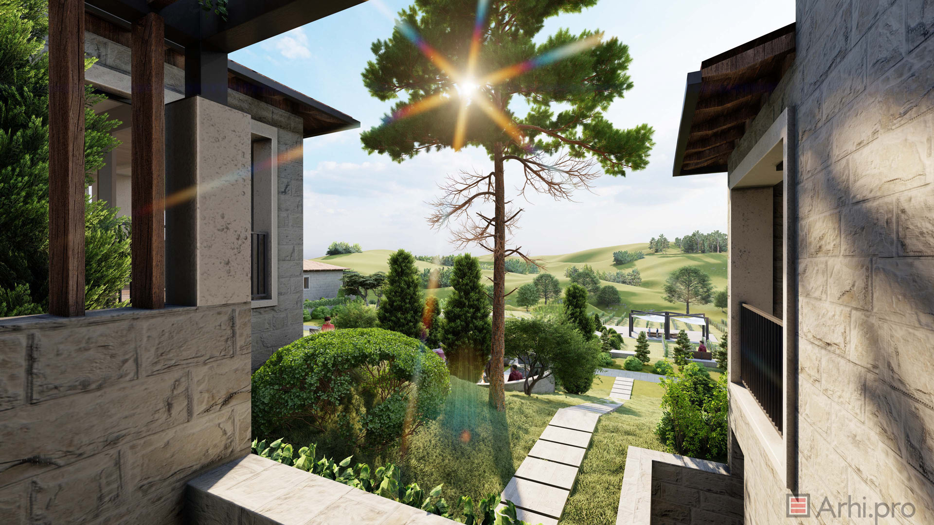 Vinarija sa degustacionom salom predstavlja centralni objekat na parceli iz koga su pruža panoramski pogled ka okolini.