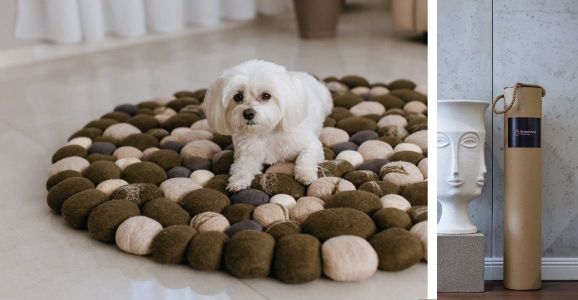 Tijana Marjanović ručno izrađuje svaki kamenčić tradicionalnom i pomalo zaboravljenom metodom rada sa vunom – pustovanjem. Za svaki kamen potrebno je 30 do 40 minuta rada, a onda se oni spajaju u tepih.