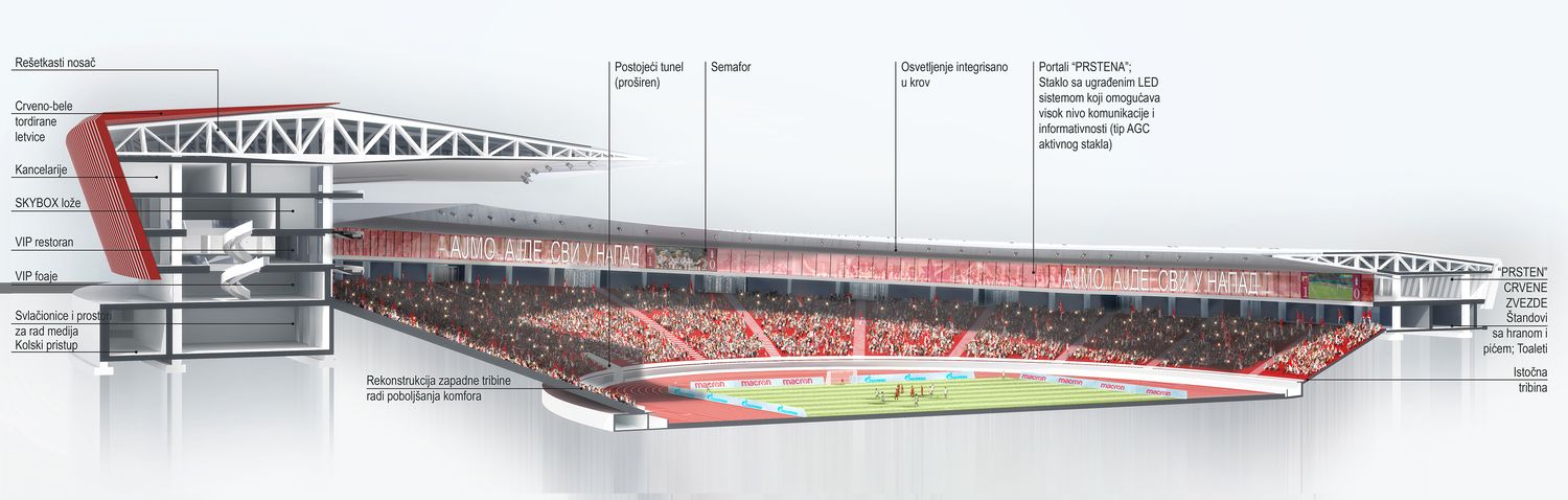 Na nedavno održanom pozivnom konkursu za rekonstrukciju stadiona FK Crvena Zvezda u kategoriji A – Rekonstrukcija stadiona sa zadržavanjem atletske staze, kao najviše nagrade dodeljene su tri jednakovredne nagrade. Jednu od njih potpisuje srpsko-italijanski autorski tim koji se sastoji od firmi IES d.o.o. – Infrastructure Engineering Services, Italferr S.p.A. i CREW – Cremonesi Workshop S.r.l. čije rešenje ovaj put predstavljamo.