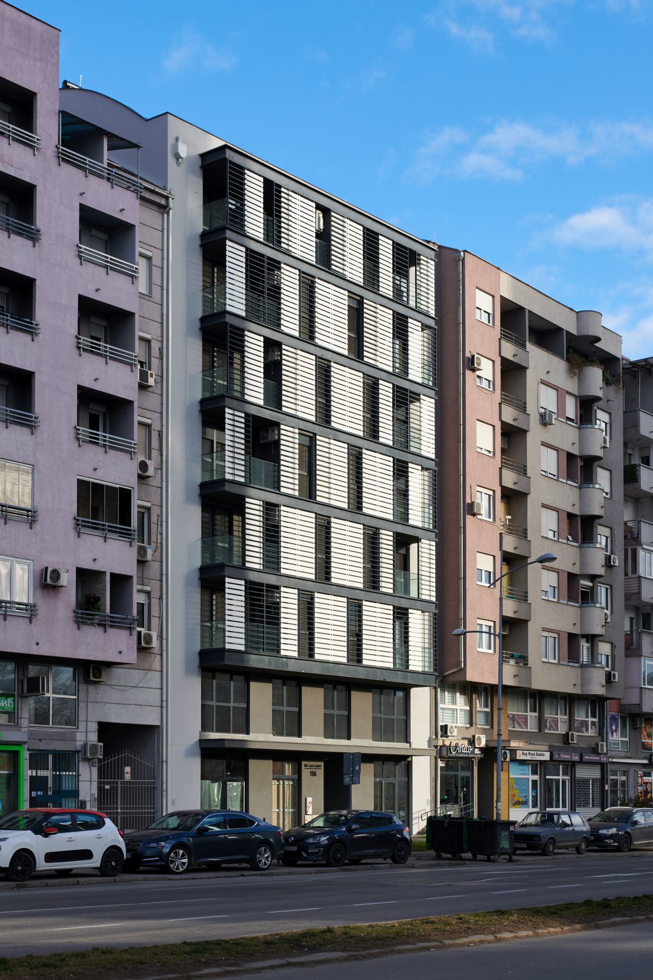 Smeštena na mestu jedine preostale kuće na ovom potezu, nova stambena zgrada na adresi Bulevar cara Lazara 106 autorsko je delo nagrađivanog arhitekte Lazara Kuzmanova.