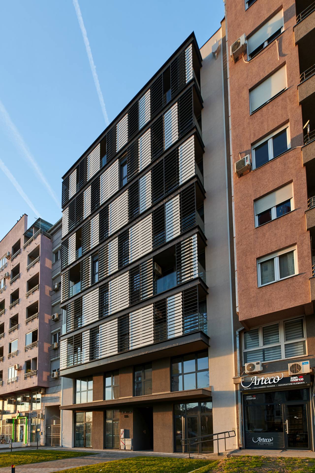 Objekat investitora “Rekord invest” ima 2.800 kvadratnih metara raspoređenih na osam etaža skrivenih iza fasadne ravni koja je centralna tačka ove zgrade.