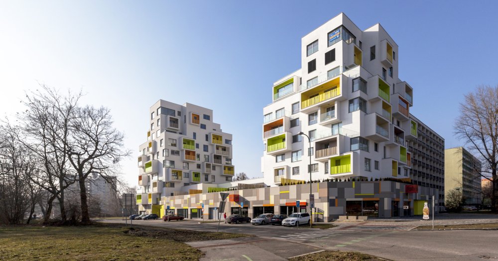 Projekat ove koloritne zgrade u prestonici Slovačke potpisao je biro Šebo Lichy u saradnji sa arhitektom Drahanom Petrovičem koji je više godina radio u Vankuveru. U ovom projektu implementirani su neki od principa kanadske stanogradnje i time su po prvi put kupci stanova u Slovačkoj dobili mogućnost da sami konfigurišu ne samo osnovu stana već i eksterijer zgrade!