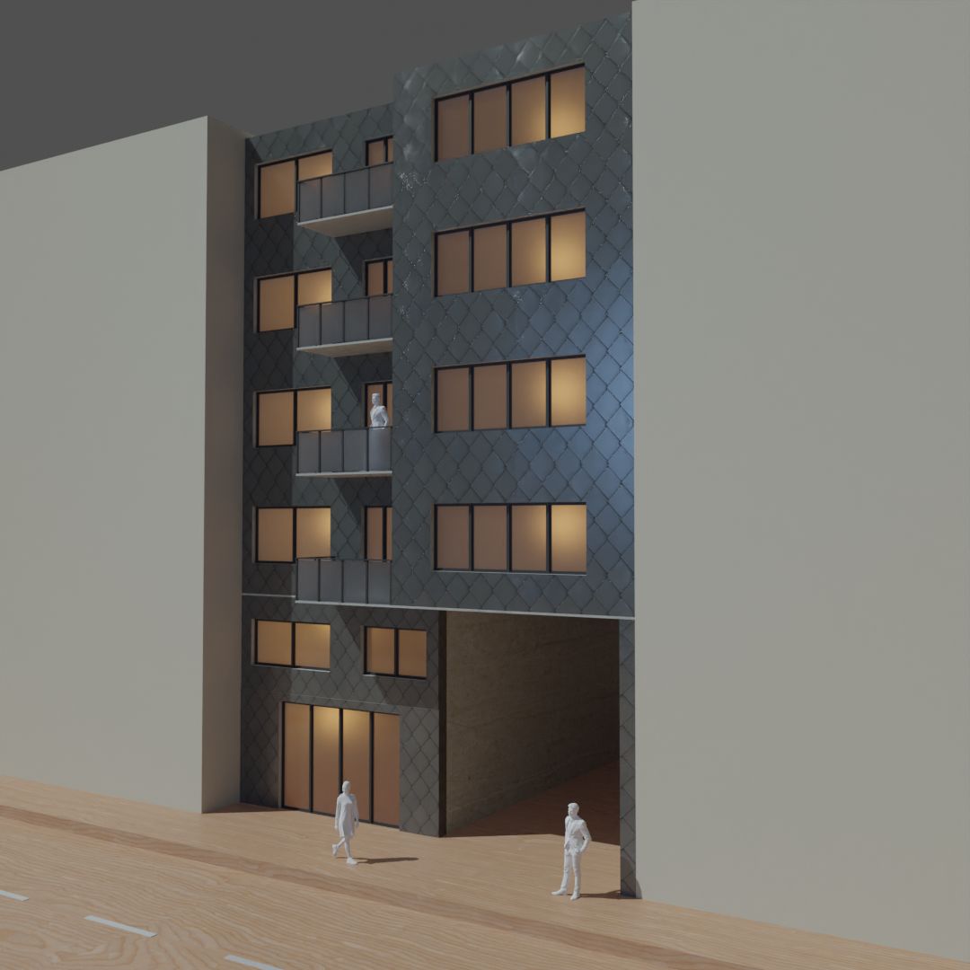 Međutim, Jovana i Stefan nisu bili apsolutno zadovoljni ovim rešenjem budući da je odavao utisak jedne konvencionalne forme poslovno-stambenog objekta ukoliko se zanemari pristup materijalizacije same fasade. Međutim, tu se otvorila prilika i za nove izazove. Kako ostati na početnom konceptu monolitne forme a “obogatiti” samu fasadu, bez previše ornamentike.