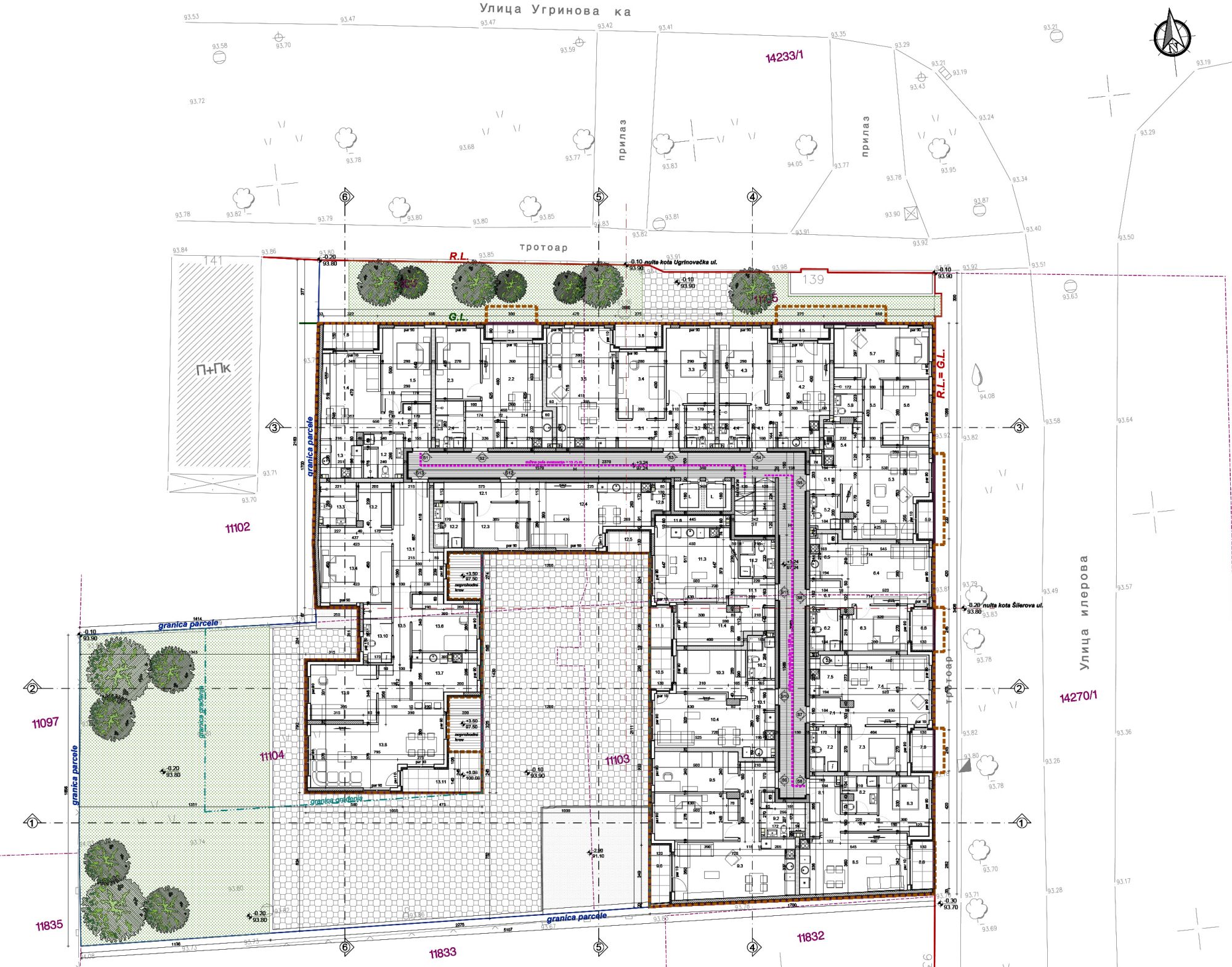Građevinska parcela na kojij se planira izgradnja stambeno-poslovnog objekta, obuhvata 4 katastarske parcele ukupne površine od 1.681 m2.