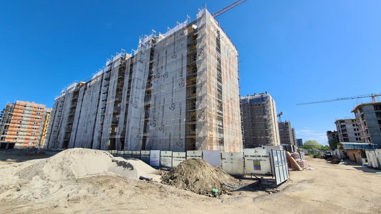 Na objektima se trenutno postavlja spoljna stolarija (primenom RAL montaže), završavaju se fasade (kamena vuna, ne stiropor) pa se mogu sagledati siluete druge faze izgradnje ovog velikog naselja koji se prostire na ukupno oko 15 hektara.