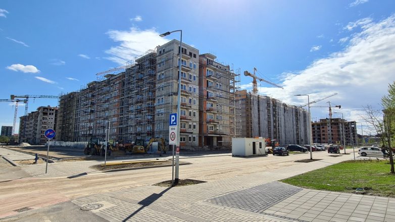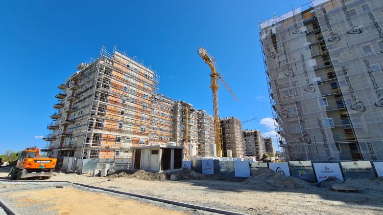 Trenutno se postavlja spoljna stolarija, završavaju se fasade pa se mogu sagledati siluete budućih objekata.