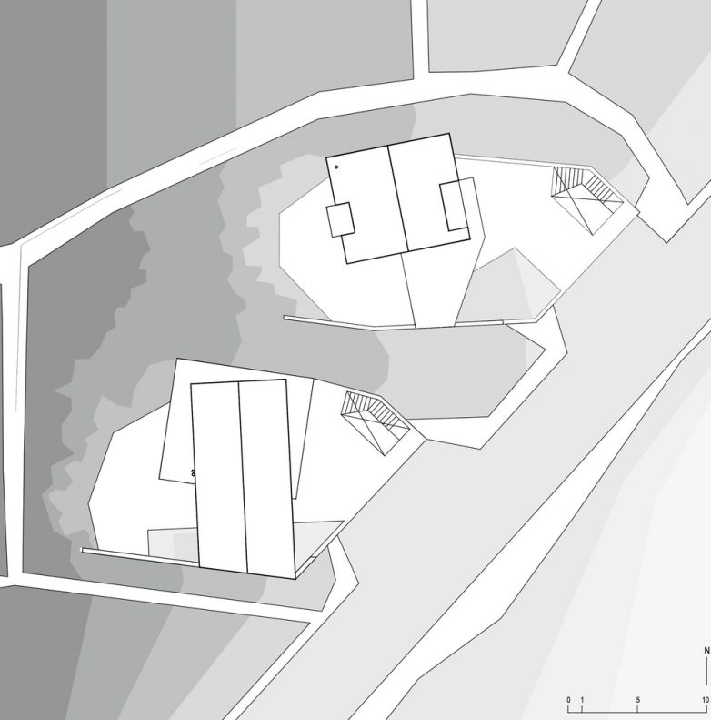 U projektovanju obe kuće primenjen je arhetipski dvovodni krov kako bi se zadovoljile propozicije arhaičnog prostornog plana i konzervatorske zaštite zone u kojoj su se našle.