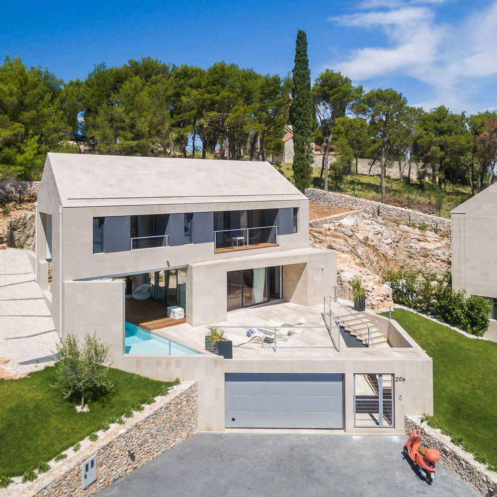 Na dve parcele na poznatom hrvatskom ostrvu nikle su dve poluukopane Platforme za život sa pripadajućim bazenima i garažama.