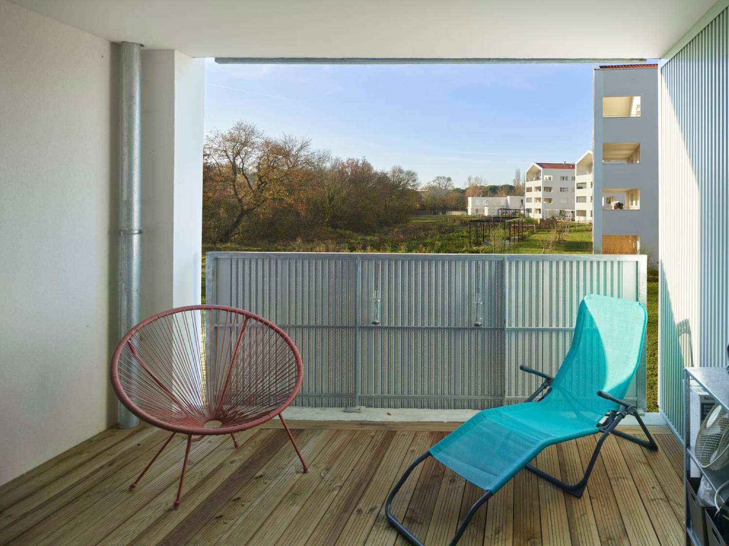 Svetlosive obloge korišćene su na spoljašnjim stranama lođe, a ista obloga, samo perforirana, korišćena je za izradu ograda za lođe.