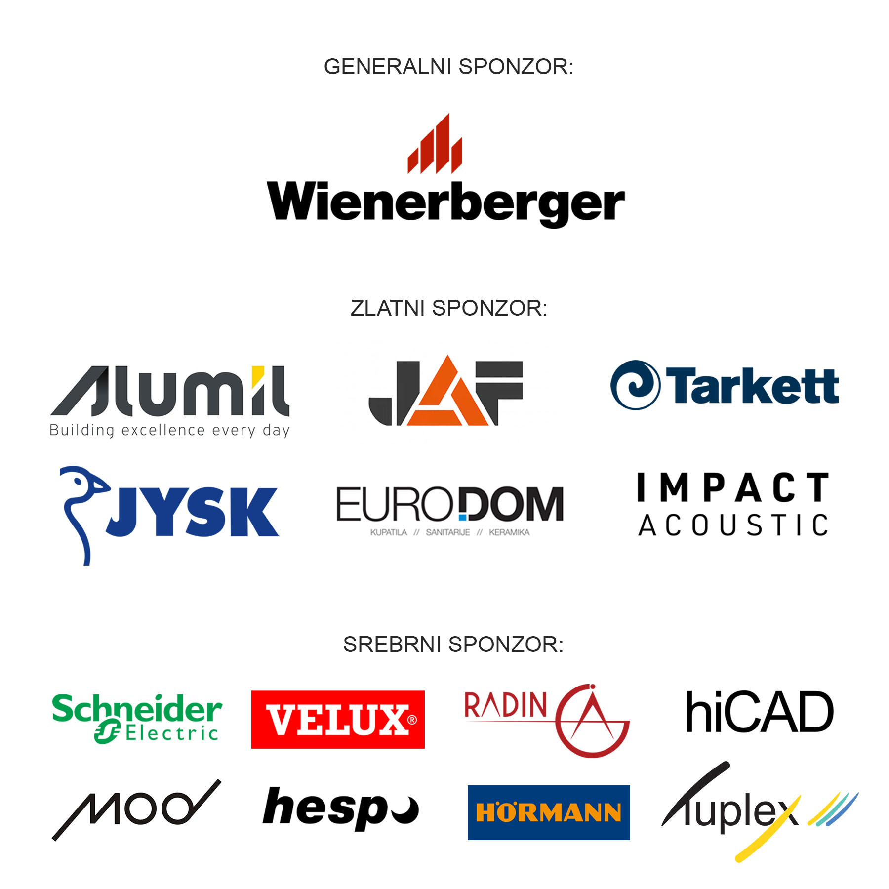 Generalni sponzor konferencije je kompanija Wienerberger Srbija. Organizaciju događaja su podržali i Alumil, JAF, Tarkett , JYSK, EuroDOM, Impact Acoustic, kao i kompanije Schneider Electric, Velux, Radin AG, hiCAD, MOD Furniture, Hespo, Hörmann i Tuplex.