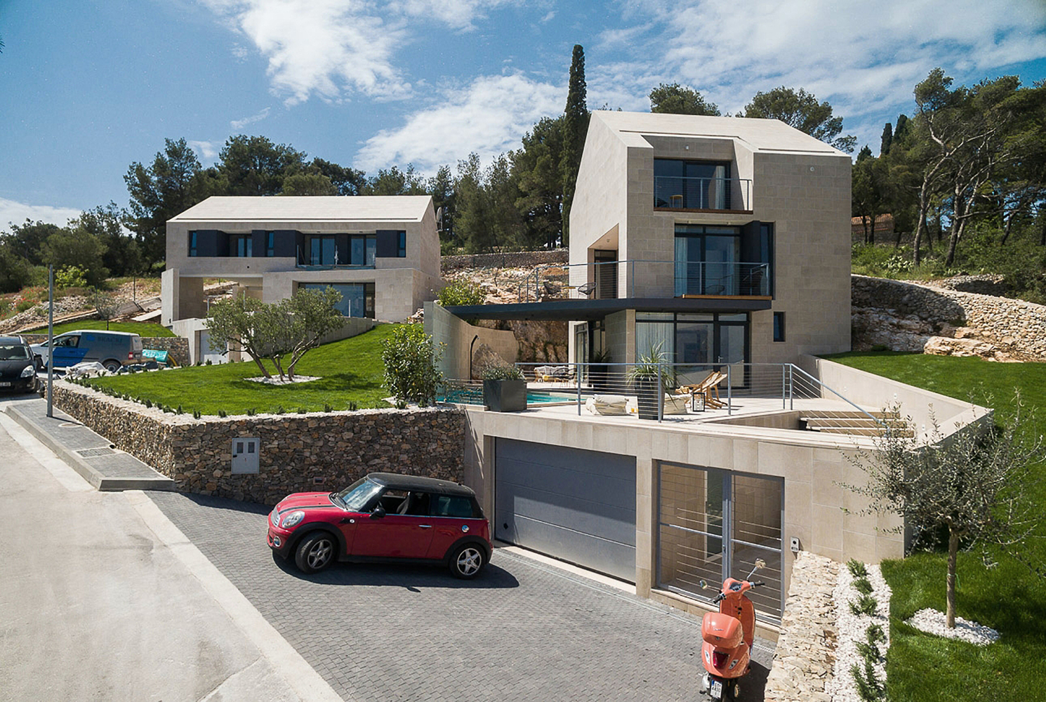 Na dve parcele na poznatom hrvatskom ostrvu nikle su dve poluukopane Platforme za život sa pripadajućim bazenima i garažama. Kako stvoriti životni prostor na padini gde sunce putuje iza naših…