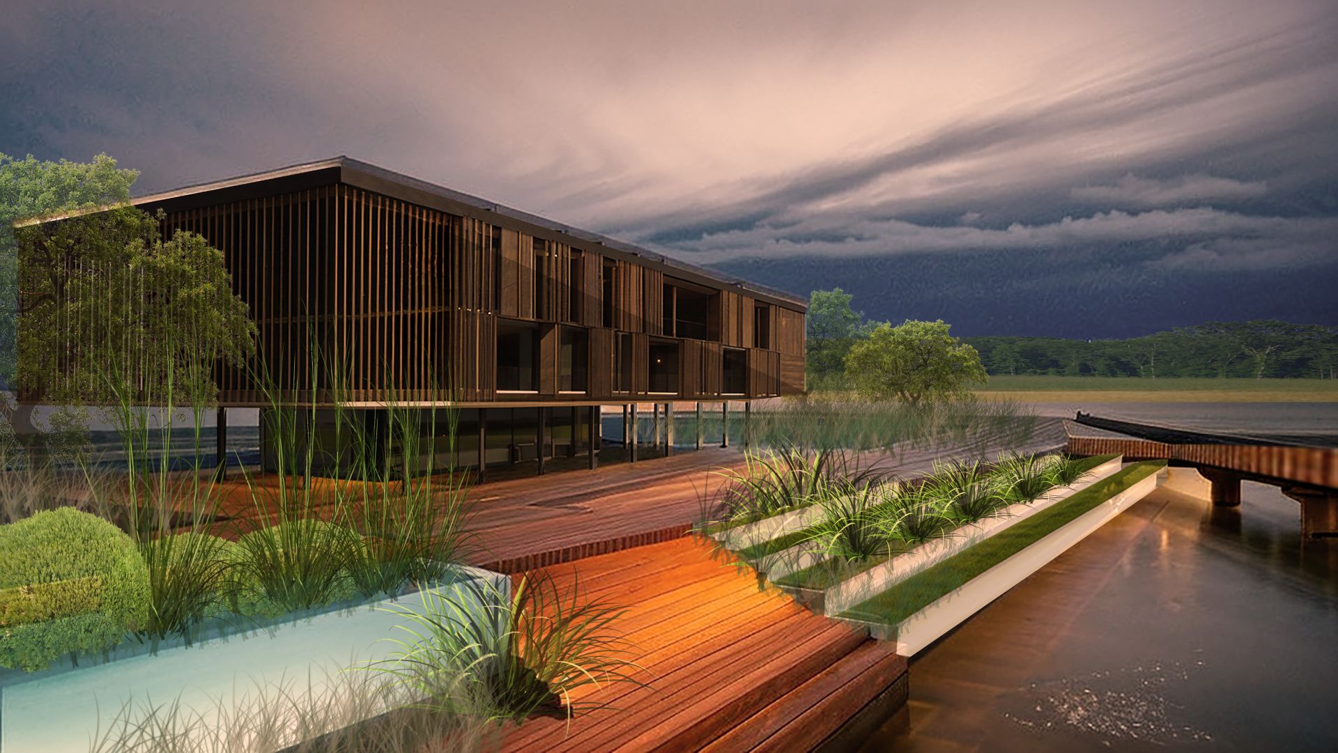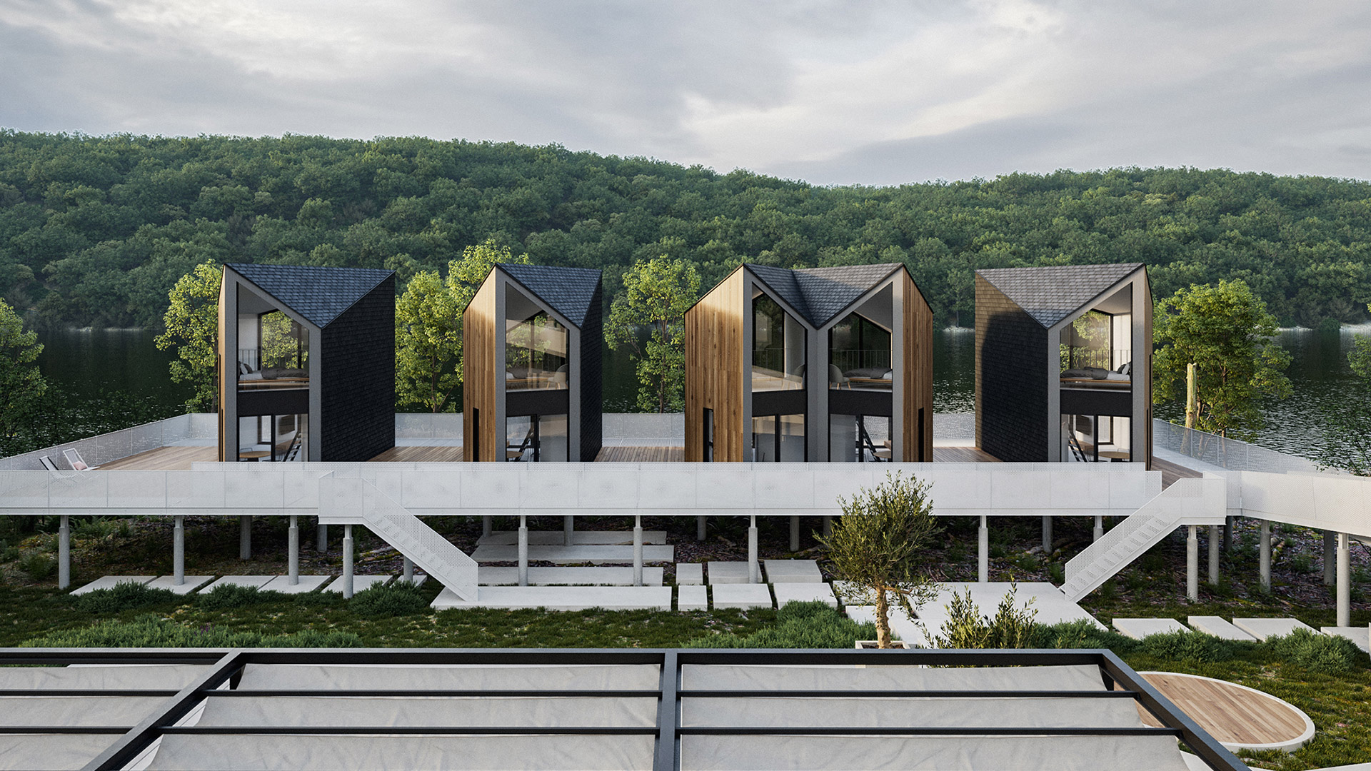 Prefabrikovana čelična konstrukcija, dinamične krovne forme i terenu prilagođena postavka šest kuća oblikuju turistički kompleks po projektu studija Architehna. Na obali Drine, u neposrednom kontaktu sa rekom i planinskim okruženjem,…