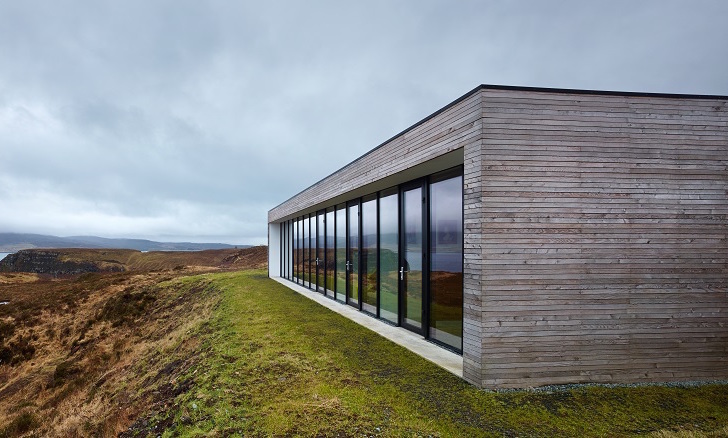 Ova kuća je jednom stranom ukopana u brdo, dok se drugom stranom otvara prema moru, pružajući predivan pogled ka pučini. Arhitektonski studio Dualchas Architects je na suptilan način ukomponovao savremenu i…