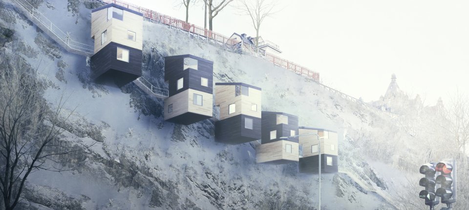 Ovi drveni bungalovi montirani su helikopterom na litici sa pogledom iz prvog reda