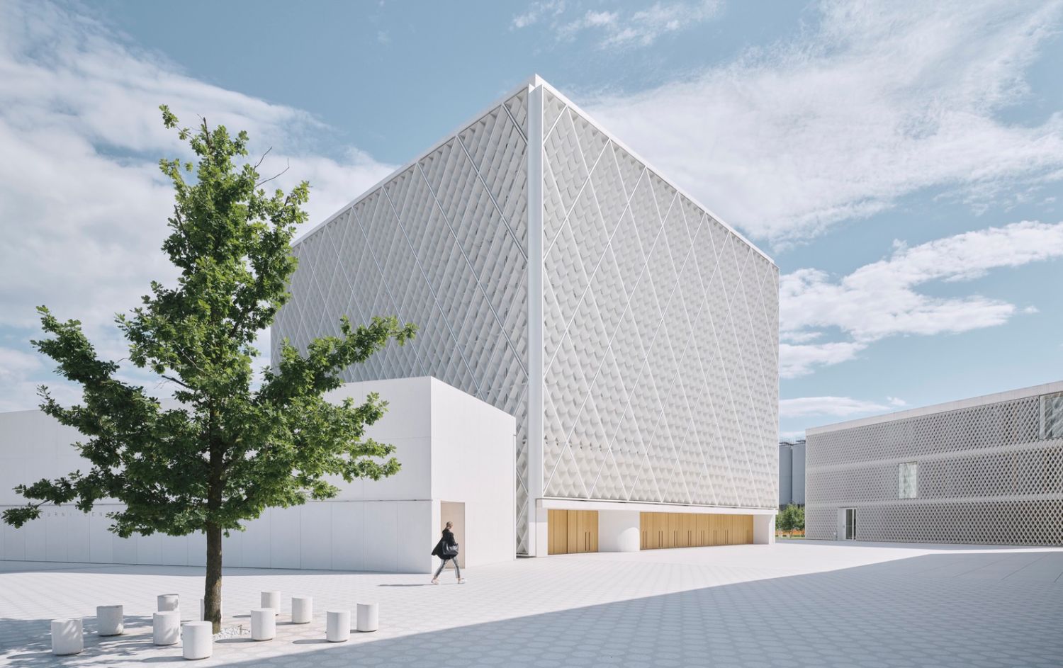 Ispunjena je belim betonom u donjem delu i transparentnim staklom u gornjem, omogućavajući na taj način da sunčeva svetlost preplavi unutrašnji prostor. „Posebnost“ lokacije za 2020. godine izgrađeni Islamski versko-kulturni…