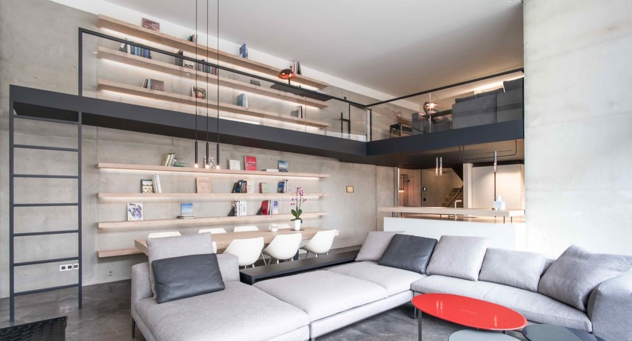 Antracit metalna konstrukcija seče ovaj prostor na pola i čine centralni detalj unutrašnjeg uređenja. Potreba za dobijanjem dodatnog prostora za život i ceđenja svakog kvadratnog centimetra izražena je, očigledno, na…