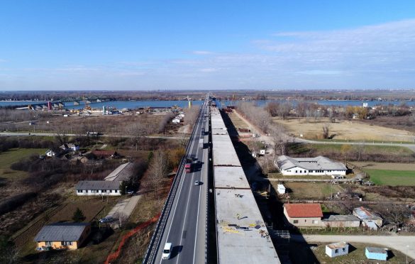 Pogled iz drona na gradilište mosta na obilaznici oko Beograda